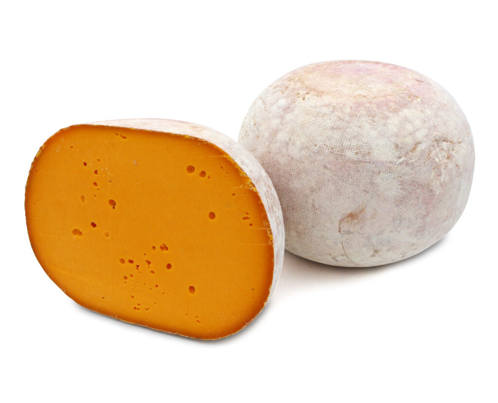 La Mimolette tendre fermière est facilement identifiable par sa forme sphérique. Sa croûte est grisâtre, légèrement crevassée. Sa pâte, orange vif, est souple fondante, sa saveur est noisetée. Un fromage qui se déguste aussi bien à l’apéritif que sur un plateau en fin de repas.